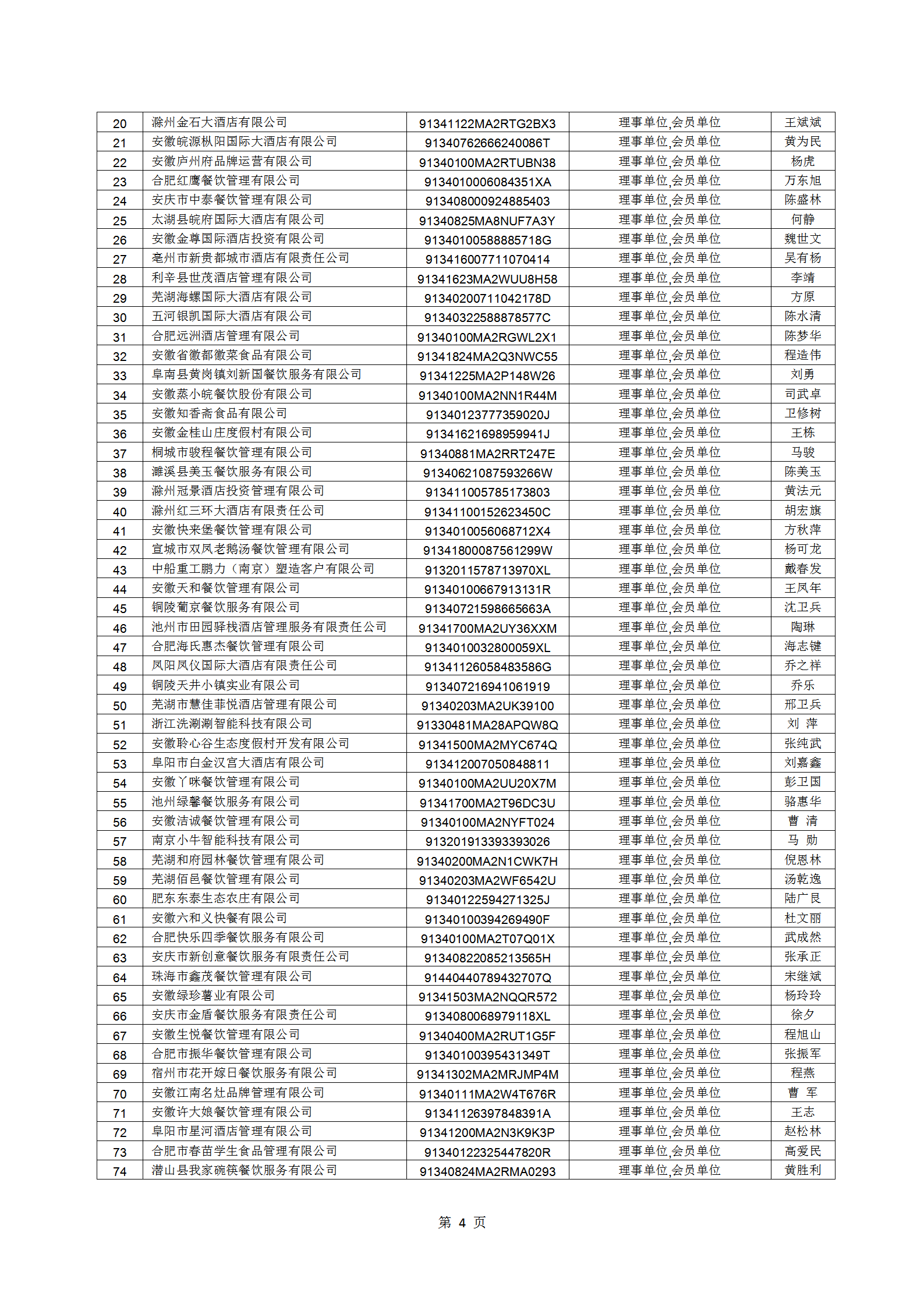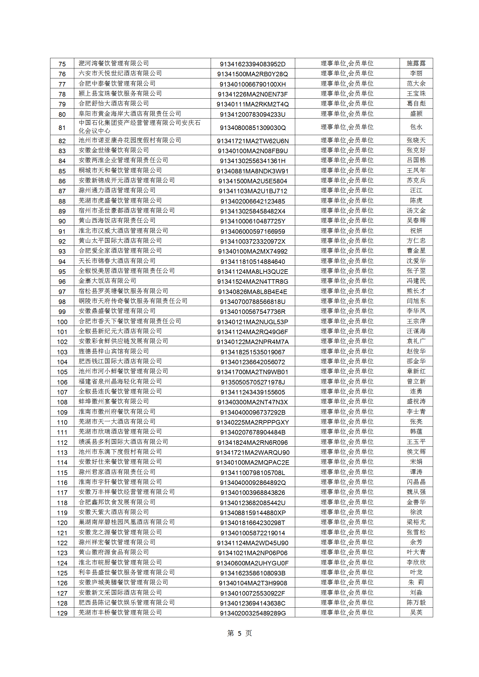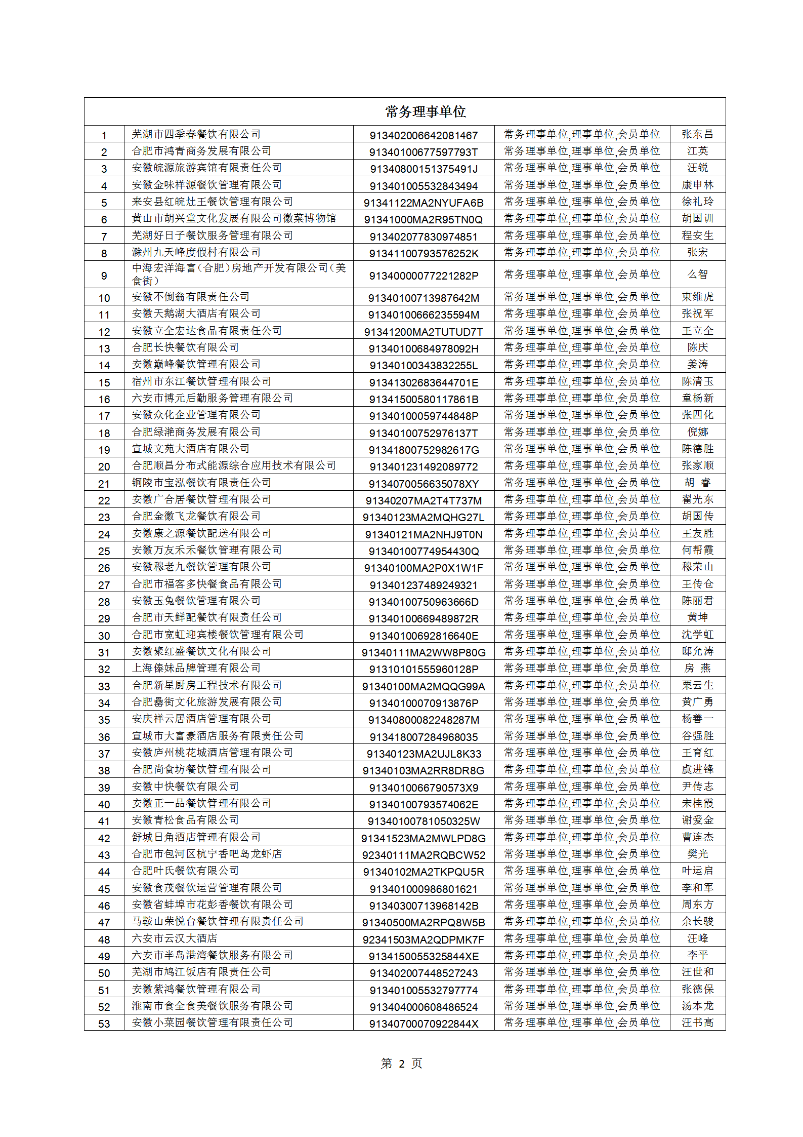 安徽省餐饮行业协会第三届理事会常务理事/理事/监事名册